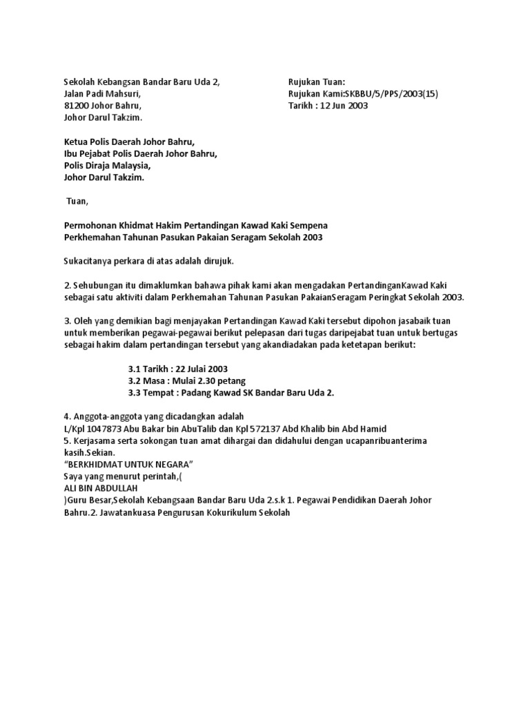 Contoh Surat Kerjasama Pihak Polis